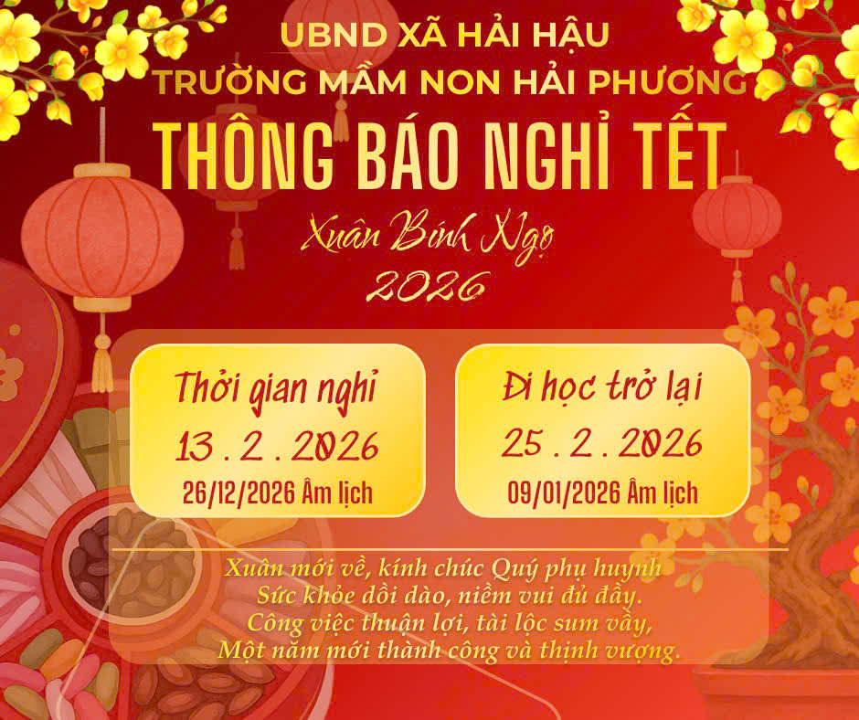 🌈💐💝Trường Mầm non Hải Phương trân trọng thông báo tới toàn thể Quý Phụ huynh về lịch nghỉ Tết Nguyên đán 2026 như sau: