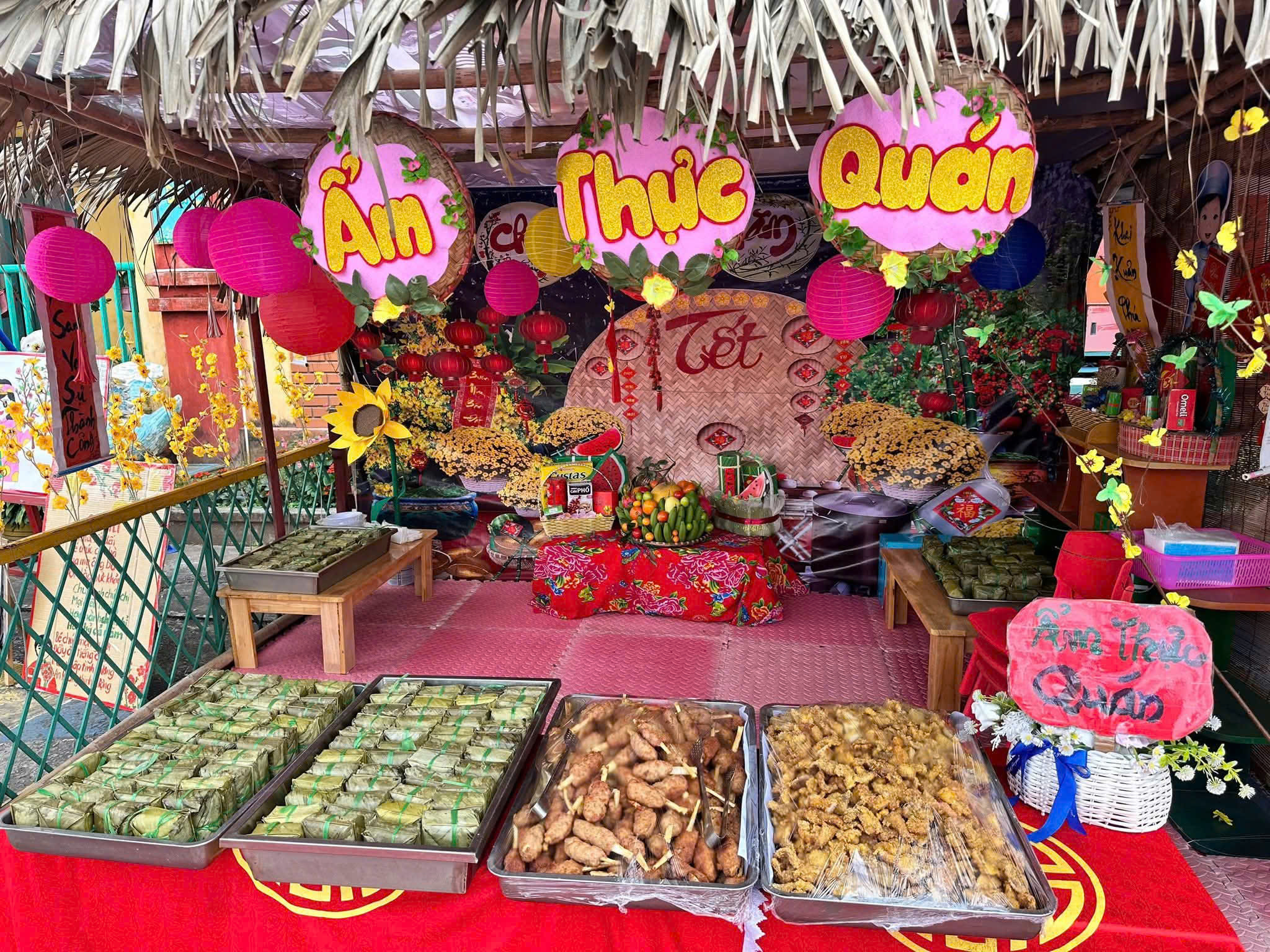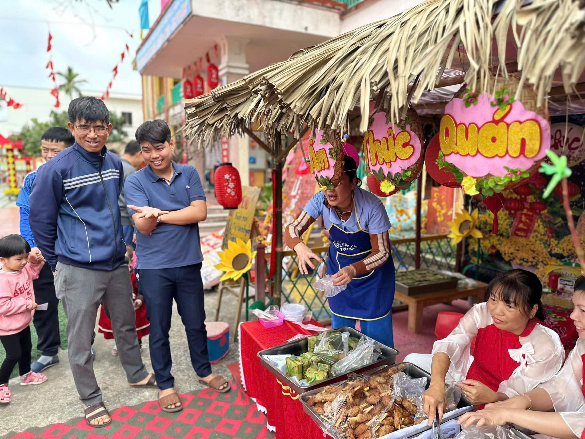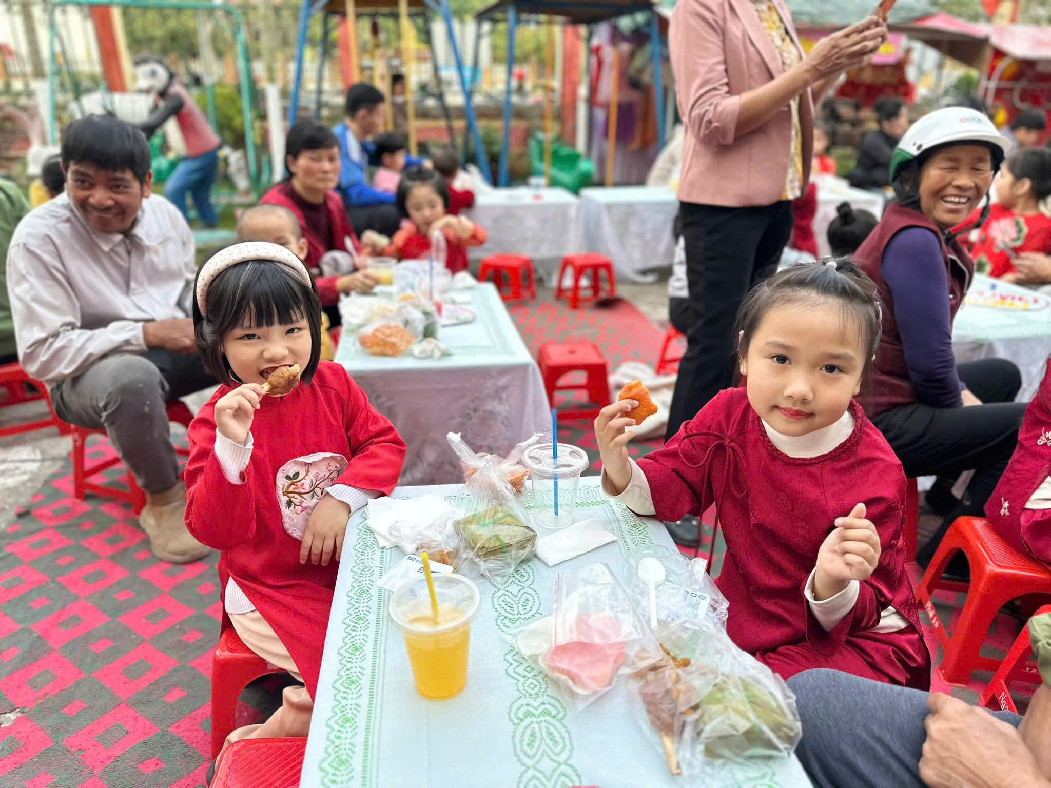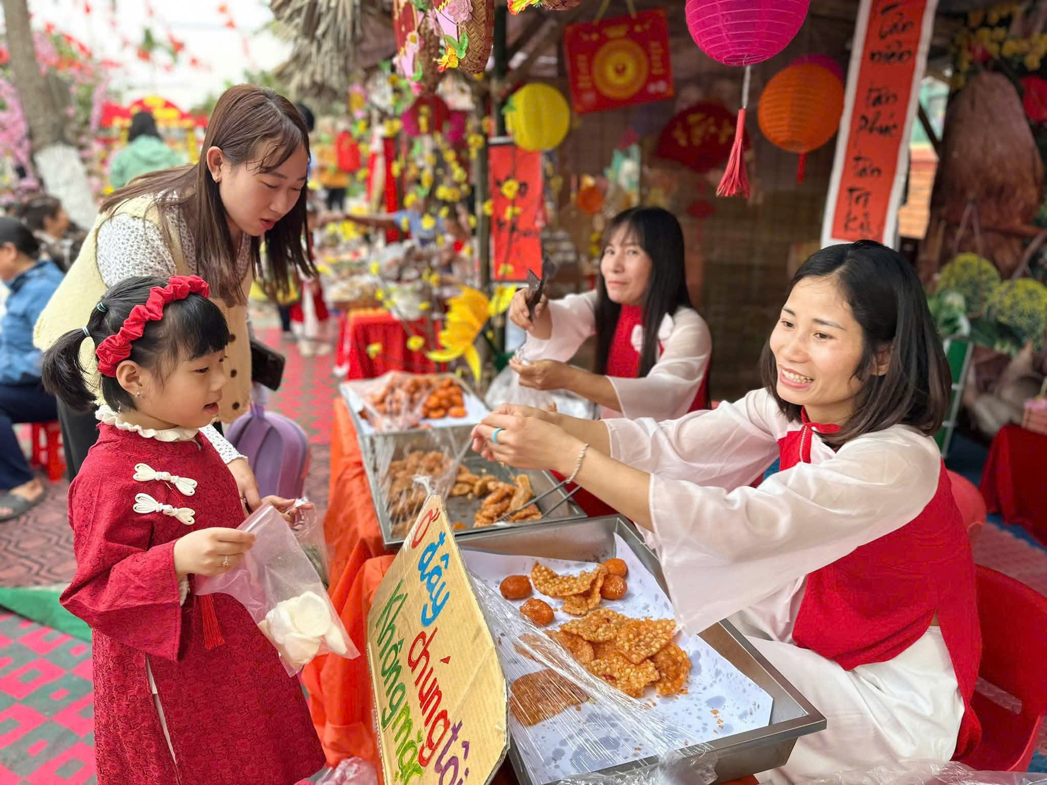 Các bé được bố mẹ, ông bà, anh chị dẫn đi tham quan, trải nghiệm các gian hàng, thưởng thức các món ăn đặc trưng của ngày tết dưới hình thức đổi phiếu lấy quà…